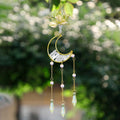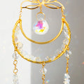 Moon and small crystal stars gold metal framed sun catcher decorated with glass crystal pendants. Hang this beauty in a well sunlit area near the window and enjoy your room filled with fairy lights!