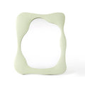 Pastel. curvy and aesthetic. this squiggly makeup mirror is a piece that will add a special touch to your daily makeup routine. Add an eye-catching statement and highlight your room with this beautiful wavy desk mirror. Place it on your makeup table with its stand or hand on the wall and enjoy the fresh new look! Best for danish pastel. sage green. vanilla girl and soft girl aesthetic rooms.